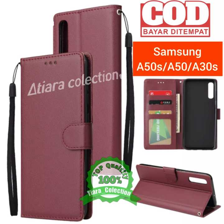 Rekomendasi Terbaik untuk untuk samsung galaxy a50 casing lipat berdiri lis penutup kaca pu kulit jelas plating case s